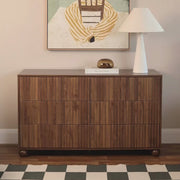 The fluted drawer fronts and ball-shaped feet bring a modern mid-century touch to your room. The walnut finish adds warmth, making it an eye-catching yet timeless piece.