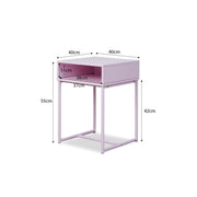 The Jude Bedside Table - Lilac is a stylish and functional piece with an open shelf and sturdy metal frame. Its sweet lilac tone makes it perfect for a child's bedroom or as a handy side table in the living room. Ideal for smaller rooms, its compact size fits beautifully anywhere.