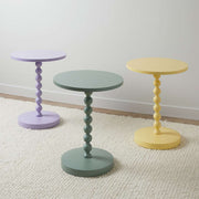 Add a fun pop of colour to your space with the Bobbin Side Table in lilac. Featuring a versatile design with a painted finish and solid wood bobbin-shaped leg, this side table suits both living rooms and bedrooms as a side table or bedside table.