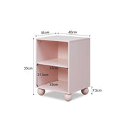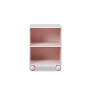 This charming side table is perfect for a bedroom or living room, featuring a soft pink tone, two open shelves for handy storage, and solid wood pink painted ball feet.