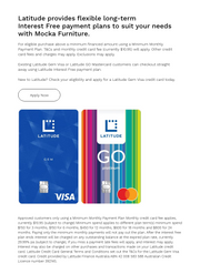 Latitude Interest Free offers flexible long-term Interest Free payment plans to suite your needs. From 3-18 months, Latitude Interest Free gives your access to a range of Interest Free offers. 24 months also available during promotional periods as set by Mocka. Existing Latitude Gem Visa and Latitude Go Mastercard credit card customers can checkout using Latitude Interest Free payment plans.