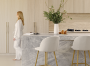 Infuse a breath of coastal serenity into your kitchen space with warm timber tones and cloud like shapes, emulating a beachside vibe.