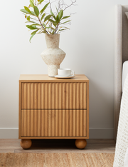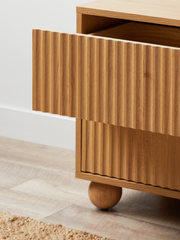 Effortlessly capture the coastal aesthetic with mid-tone wood finish, fluted textures, and trendy ball-shaped detailing.