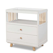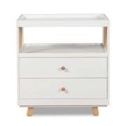 Storage is essential when you have a baby, which is why any parent will love the Aspen Change Table with Drawers - White/Natural. With a large open shelf and two spacious drawers, this modern change table makes the most of limited space by incorporating storage options. No need to reach far for fresh nappies or wipes, simply pop the essentials in the shelf and drawers and have everything within easy reach. The top tray is wide and spacious, so your baby feels comfortable and protected. A changing table with a changing mat tray can help parents make the everyday routine of changing nappies run smoothly. That way you have more time to concentrate on important things - like getting more smiles, snuggles, and giggles from bubs. This on-trend changing table features a two-toned design in white and natural for a chic and modern change table that will easily match to other decor in your nursery. Perfectly paired with our popular Aspen Cot - White/Natural, if you love this look, set up your dream nursery from the rest of the Aspen collection. Create a modern changing station with plenty of storage using the Aspen Change Table with Drawers.