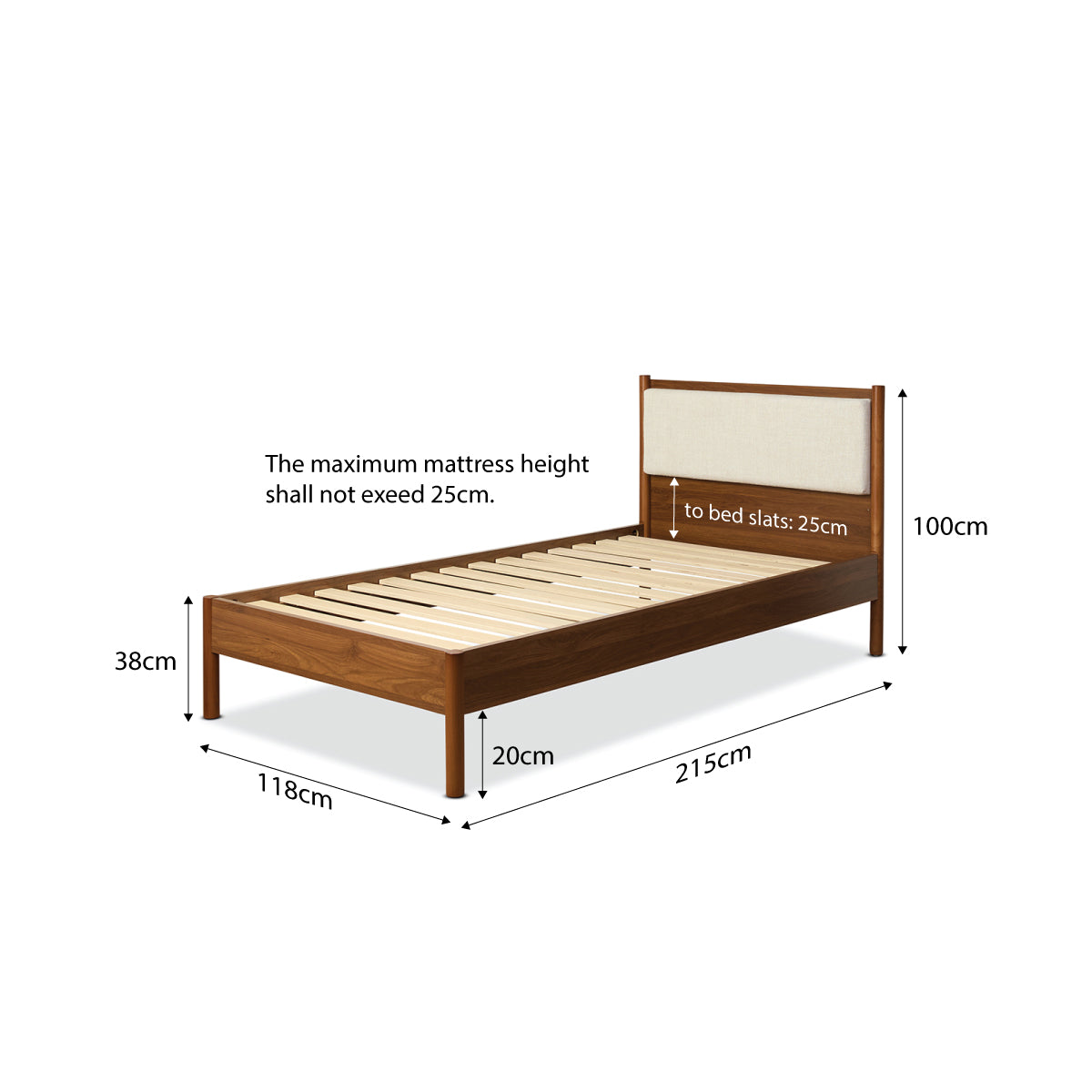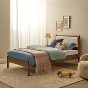 With its rich walnut finish and upholstered bedhead, the Blair King Single Bed suits any decor. It adds warmth and modern appeal, perfect for both kids' and guest bedrooms.