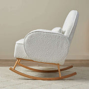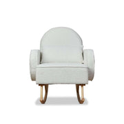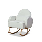 The Buddy 2-in-1 Rocking Chair features soft boucle fabric and ergonomic design, offering exceptional comfort. With included lumbar and back support cushions, it's perfect for relaxing or nursing.