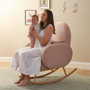 Relax in style with the Buddy 2-in-1 Rocking Chair, crafted from soft blush coloured boucle fabric for ultimate comfort. With curved edges, ergonomic support, and a matching lumbar cushion, it’s perfect for nurseries, bedrooms or the lounge. Easily convert it to a chic armchair with the extra legs included – style and practicality in one!