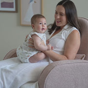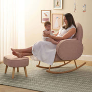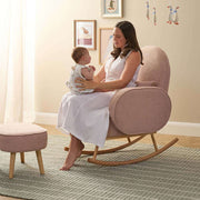 Designed with soft boucle fabric and curved edges, the Buddy rocking chair provides ergonomic back and arm support, helping you relax while nursing, reading, or unwinding after a busy day.