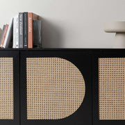 We love the painted finish in a rich, statement black. This dark colourway makes the upholstered rattan door panels pop for a textured, layered look you'll adore.