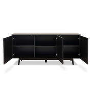 Featuring three spacious cupboards, you'll have plenty of useful space for household essentials and internal shelving to keep it all organised. Use the cupboards to store napery, vases, board games and more and keep your home uncluttered and stylish. The wide top is the perfect surface to display a large artwork, ceramics, trays, plants, and other decor or to style a cocktail bar or serve up a buffet when entertaining.