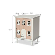 Add charm and functionality to any child's bedroom with Mocka's Dollhouse Bedside Table in soft dusty pink. This timeless piece doubles as a bedside table and dollhouse, featuring an opening cupboard door and shelf for storage. With adorable white-trimmed windows, it's perfect for organising belongings while sparking imaginative play. Ideal for classic and cosy bedroom aesthetics.