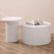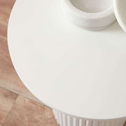 Add elevated, modern style to your home with the Eve Side Table White. This round side table features a statement shape with a fluted, column base that adds texture and style into a living room or bedroom. The round tabletop is flat and smooth, providing good space for a lamp or to display plants and decor.