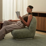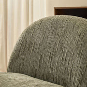The wide, low seat and textured chenille fabric provide lasting comfort. Its earthy sage green colour pairs well with modern or mid-century spaces, creating a relaxed yet stylish vibe.