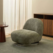 Add style and comfort to your home with the Farrow Swivel Occasional Chair in sage green. Featuring a wide, low seat, 360-degree swivel function, and a chrome base, this chair blends curvaceous mid-century design with textured chenille fabric. Perfect for living rooms or cosy corners, the earthy sage shade complements a variety of interior styles.