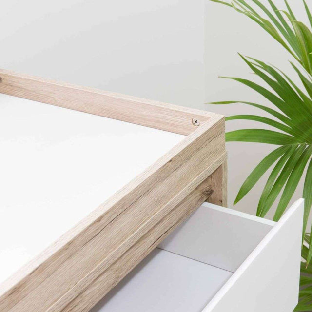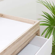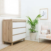 The Jesse Changing Tray is made to make life with bubs that little bit easier. Designed specifically to fit our Jesse Three Drawer (purchased separately), this change tray allows you to attach the tray to the top of the drawers to create a tallboy and change table all-in-one. If you don't have the space or just don't need two different units in one nursery, then this is the perfect option. With the same wood-grain veneer and white styling as the rest of the range, you can easily deck out your nursery from among the Jesse Range.
