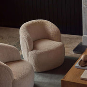 The chair’s curvaceous bucket seat and soft Teddy fabric provide cosy support for relaxing or reading. Its warm texture makes it a go-to spot for unwinding.