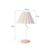 The Luz Squiggle Table Lamp features a fluted linen lampshade and a pine wood base that adds a touch of whimsical elegance. Its unique design enhances any room, making it aesthetically pleasing and cosy. It’s sure to draw compliments from every guest.