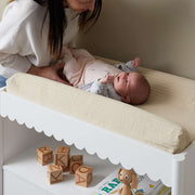 The Maisie Scalloped Change Table boasts two spacious lower drawers, providing ample storage for nappies, wipes, and baby essentials, keeping everything you need within arm's reach.