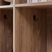 Keep your entranceway neat and organised with the Maverick Coat Locker. This versatile storage unit features three hanging spaces for coats, scarves and bags, plus multiple open shelves for shoes, baskets or loose items. Designed with a warm mid-brown wood-look finish, it adds both style and practicality to your mudroom or hallway.