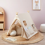 Introducing the versatile Minka House in Beige Gingham, a light and easily movable playtime house. Made from durable canvas with sturdy bamboo poles, it offers long-lasting fun. The neutral beige gingham design seamlessly fits into any room, providing a cosy and charming play area. The fabric door can be tied closed for added fun.