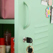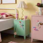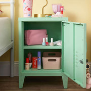 Discover the Mocka Original Locker Bedside in Mint. This trendy, mint green metal bedside table features a lockable cupboard, perfect for adding colour and personality to any young person's room. Mix it with pink pieces for a fun look or pair it with earthy tones for a grounded feel.