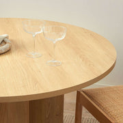 Experience the perfect blend of style and durability with the Otis Round Four Seater Dining Table - Natural. Featuring solid MDF legs and a thick MDF top finished with melamine, this table ensures lasting durability. The natural wood look finish gives it a modern coastal vibe, making it a great fit for any relaxed home. Ideal for dining rooms needing a stylish yet casual touch with its on-trend tubular legs.