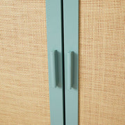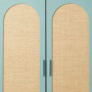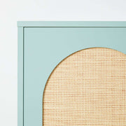 Designed with one open shelf at the bottom and neutral rattan door fronts, it provides accessible storage while adding a modern yet playful touch to any bedroom decor.
