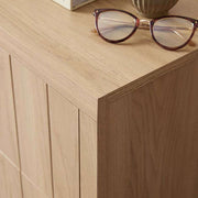 Inspired by farmhouse style, the natural wood-look finish and grooved detailing create a warm, classic aesthetic. This design complements a variety of rooms, blending seamlessly with modern or traditional décor.
