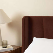 Inspired by mid-century design, the rich chocolate velvet colour adds a trendy touch to your room. This elegant bed suits various bedroom styles, making your space look modern and warm.