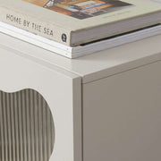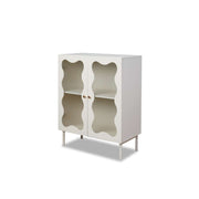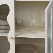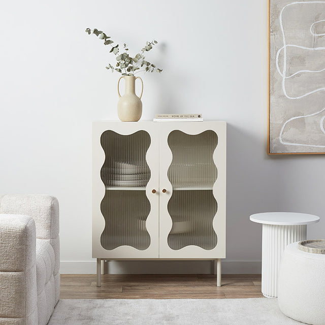 The Remi Wavey Cabinet is a stylish and functional storage option. With two strengthened fluted glass doors, metal legs, and a MDF frame, this cabinet is perfect for storing books or using as a drinks cabinet. Its elegant beige finish makes it a great fit for living rooms or dining areas.