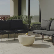 The round, sculptural shape adds a modern touch to any outdoor space. Its versatile beige gloss finish pairs seamlessly with neutral décor and nests beautifully with Mocka side tables.
