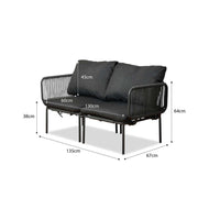 Transform your outdoor space with the Sorrento Outdoor Two Seater Sofa in charcoal. Featuring a sturdy powder-coated steel frame, water-resistant cushions, and stylish polyester rope detailing on the arms, this sofa combines durability and design. With two generous seats and plush back cushions, it’s perfect for relaxing in modern patios or cosy backyard nooks.