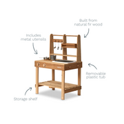 Crafted from fir wood, the Messy Mud Kitchen is tough enough to stay outside all year round. Its sturdy design ensures long-lasting fun for adventurous little ones.