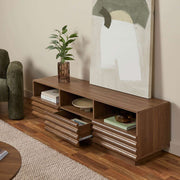 The Theodore Ribbed Entertainment Unit offers three pull-out drawers and three open shelves, letting you organise cables, devices, and accessories for a clutter-free living space.