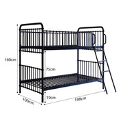 Distance from floor to bottom of bunk - 19cm. Clearance space from the end of the ladder to the side of the bed - 45cm. Fits 2 x standard size single mattress - 189cm x 91cm (not included). The mattress height should not exceed 17cm. Top bunks are not recommended for children under the age of 9yrs. The first ladder rung is 52cm from the ground - in accordance with the mandatory safety standard.
